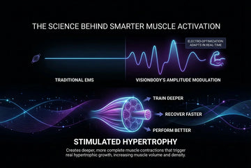 At Visionbody, we have discovered that you can train your muscles even more effectively by mixing low and medium frequencies in a specific way, like a "cocktail." Only the combination of the two frequency types creates a truly deep muscle tension that also feels natural. That's why we're so proud of our EMS technology.... Fast-twitch muscle fibers (type II) can only be trained with extremely heavy weights and few repetitions or with fast and explosive exercises such as jumps. However, these "type II muscle fibers" are extremely important for reducing body fat, but also for our health into old age.